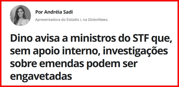 – Não houve qualquer destaque para o discurso do deputado sobre suas razões para sentar-se na cadeira do Presidente. Sorte dos brasileiros que o Flávio Dino prestou atenção. E pediu ação da Polícia Federal contra a sala das emendas e a ex-assessora do Arthur Lira, dona da sala.