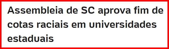 9 – Eu acho que as Assembleias Legislativas de Estados cujas populações sejam indubitavelmente brasileiras exatamente porque se formaram a partir da miscigenação (brancos de Portugal + negros da África + povos originários) deviam limitar vagas para catarinenses em suas faculdades.