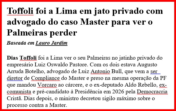 12 – A realidade é incontestável: a piscadela entre Trump e Lula foi muito mais impactante que o I love you que o ex-mitô sussurrou pro dito cujo. Mas a grande imprensa tenta disfarçar isto e insiste que o fim da Magnifsky é uma vitória da diplomacia brasileira, dos empresários, e…