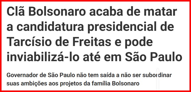 7 – É inquestionável que Tarcísio de Freitas, um tecnocrata neófito na política, foi eleito governador de São Paulo em razão do conservadorismo dos paulistas, que os torna antipetistas, levando a maioria a votar no indicado pelo ex-mitô. E agora? Desprezado pelo ex-mitô, votarão nele de novo?