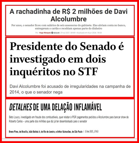 -…e Alcolumbre voltou à presidência do Senado, impondo sua vontade como antes. Se o Senado aprovar a Dosimetria hoje, ele confirma seu poder, se ela for rejeitada, é bom ele se preocupar com a reeleição.