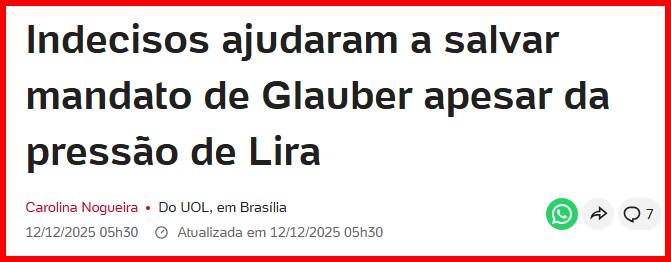 12 – As redes ainda estão alvoroçadas com mais uma desordem na Câmara, muita gente indignada com a violência empregada contra o deputado Glauber Braga e a imprensa, com alguns jornalistas sendo empurrados e sendo forçados a saírem do local pela Polícia Legislativa, tudo… determinado pelo seu presidente.
