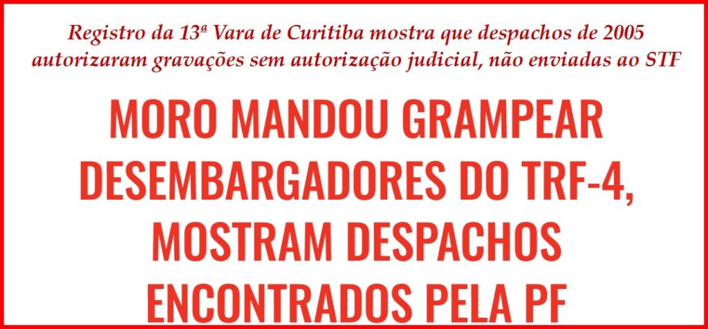 1 – Enfim, está explicado porque os ilustres desembargadores do TRF-4 nem leram as centenas de páginas em que Sérgio Moro condenava Lula sem provas e não só aprovaram a condenação como aumentaram a pena pedida por ele. Que as investigações da PF prossigam e talvez saberemos…