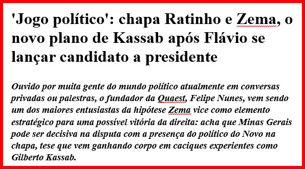 -…e volúveis, adorando estarem sempre do lado vencedor. Isto fica claro nas últimas 02 pesquisas para presidente, após matéria do Globo indicando que o CEO da Quaest tem até então insuspeita preferência por uma chapa Ratinho/ Zema.