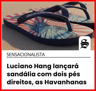 -…nem o outro grupo pedindo ajuda aos extraterrestres e, muito menos, a marcha pela Avenida Paulista carregando uma imensa bandeira americana. Mas eles insistem: o boicote contra as sandálias Havaianas é uma vergonha nacional e motivo de chacota mundial.