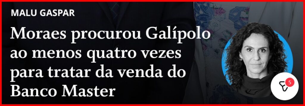 4 – Não deixa de parecer encomendada esta operação “desmoraliza Xandão” que movimenta jornalistas, analistas e redes sociais a partir do contrato milionário da esposa dele com o banco Master. Os golpes do Vorcaro, do Ricardo Magro, das fintechs e os…
