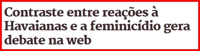12 – De um lado, a indignação causada pelo anúncio da Fernanda Torres, com gente destruindo sandálias Havaianas e, de outro, a naturalização da morte de uma mulher, propositalmente atropelada e arrastada por um ex-ficante, dá bem a medida…