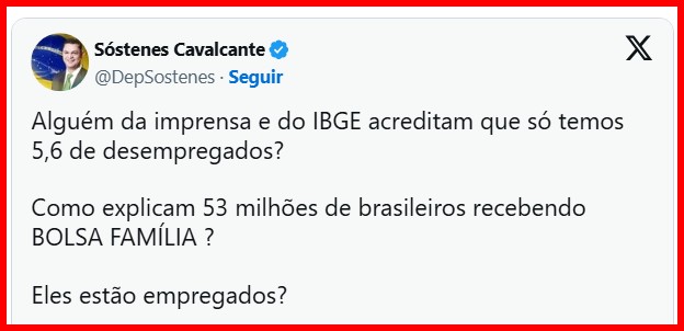 5 – O egrégio deputado Sóstenes, líder do PL, aquele que guardava R$430 mil em espécie no guarda-roupa, e que justificou a posse da bufunfa pela venda de uma casa que não foi vendida, reapareceu na Mídia criticando Lula e o Bolsa Família.