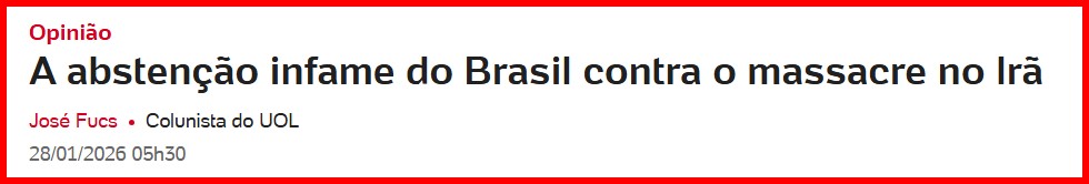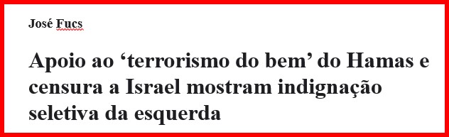 – Em outubro passado, ainda no Estadão, ele havia escrito outro artigo, então atacando a esquerda, a luta do povo palestino e, com sutileza conveniente, apoiando Israel pela luta contra o terrorismo (que matou 71 mil palestinos, milhares de crianças inclusas).