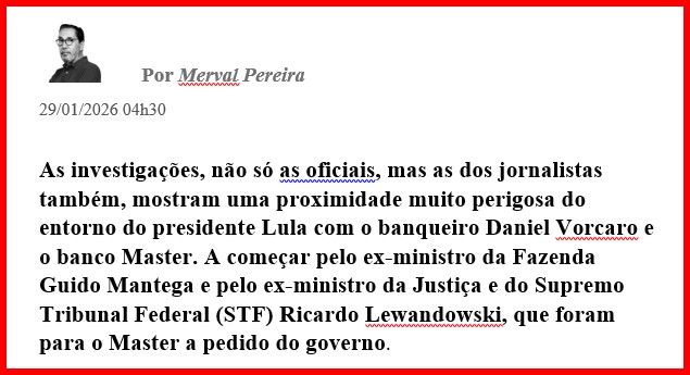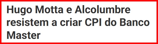 5 – Parece-me que as piranhas não se satisfizeram com um único boi. A caravana continua sob riscos pra atravessar o mar de lama. E as elites financeira e política examinam outros bois até então preserváveis. Alcolumbre e Motta refugam CPI do caso Master enquanto…