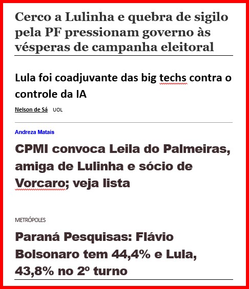 -…mas Simone Tebet e Ciro Gomes não furaram a “polarização” e, mesmo com milhões do Tesouro e da elite despejados no ex-mitô, Lula virou tri-presidente. Pra 2026, os pruridos morais contra a famiglia estão indo pro lixo. Corrupto é o Lulinha e traidor é o Lula; e o 01 já é o favorito…!