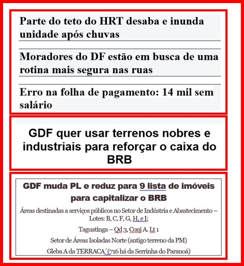11 – Como é sabido – e constitucional – os principais custos do GDF, saúde, educação e segurança, são bancados pelo governo federal, o que permite aos governantes locais terem uma gestão que atenda as necessidades de seu povo. Seus políticos, porém, não pensam assim.