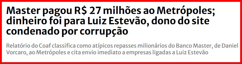 9 – Mesmo de pé atrás com a cobertura enviesada do caso Master pela Mídia em geral, que focou seus holofotes muito mais no STF e em figuras do governo, eu presumi que na do Metrópoles a sanha acusatória tinha razões pessoais. Seu dono, Luiz Estevão, foi condenado…