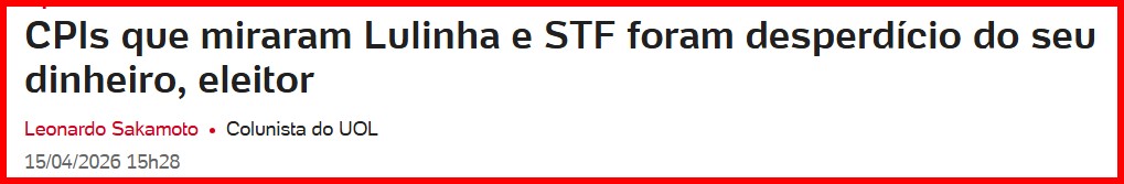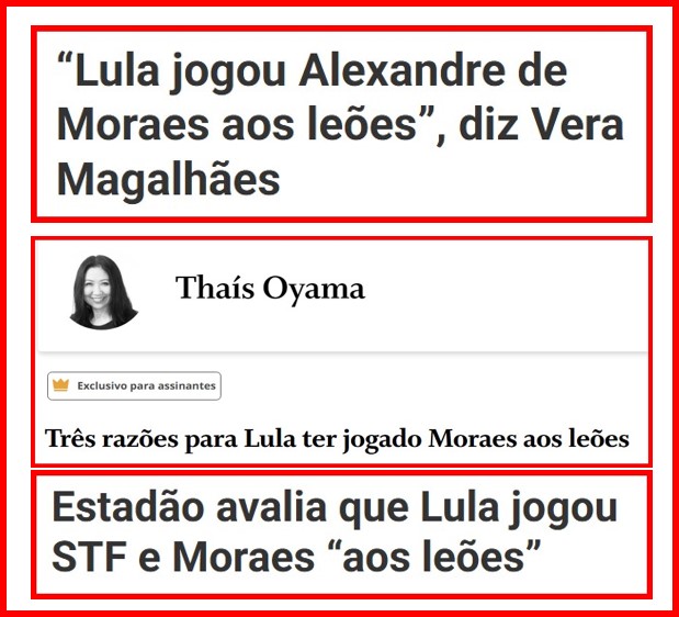 – É verdade que escalou a Malu Gaspar para manter críticas ao STF, que teve 03 ministros acusados de crimes de responsabilidade no relatório final do senador Alessandro Vieira na CPI do Crime Organizado. Mas também colocou um velho repórter de polícia, hoje conceituado… -…analista político, para destroçar o documento e questionar o interesse de seu autor. Lula, porém, continua o alvo preferencial.