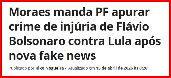 – Dependentes da elite, ambos cumprem uma missão: desconstruir Lula e, para tanto, atacar tudo e todos que possam atrapalhar isto ou influenciar os eleitores na aprovação de seu governo. Cumprindo as leis, ele e o STF vêm fazendo isto. Dar a entender que se persegue o 01 é arma poderosa.