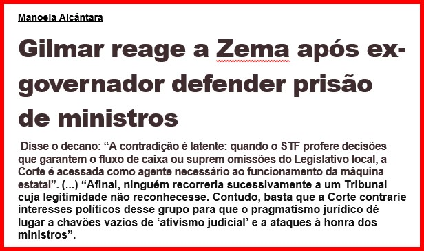 5 – Creio que os supremos devam ser investigados sim por possíveis crimes, mesmo de responsabilidade, e acho que Alexandre de Moraes é um deles, mas a sanha com que parlamentares e barões da imprensa o estão atacando me pareceu ilógica. Mas não é!