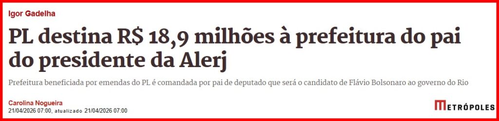 -…administração fluminense, eliminando baratas, ratos e vermes que viviam às custas do Estado, sob a gestão do grupo político de Cláudio Castro, Bolsonaros e do ex-presidente da ALERJ, o único preso até agora. Mas Douglas Ruas não está sendo grato… ele é da ‘tchurma’!