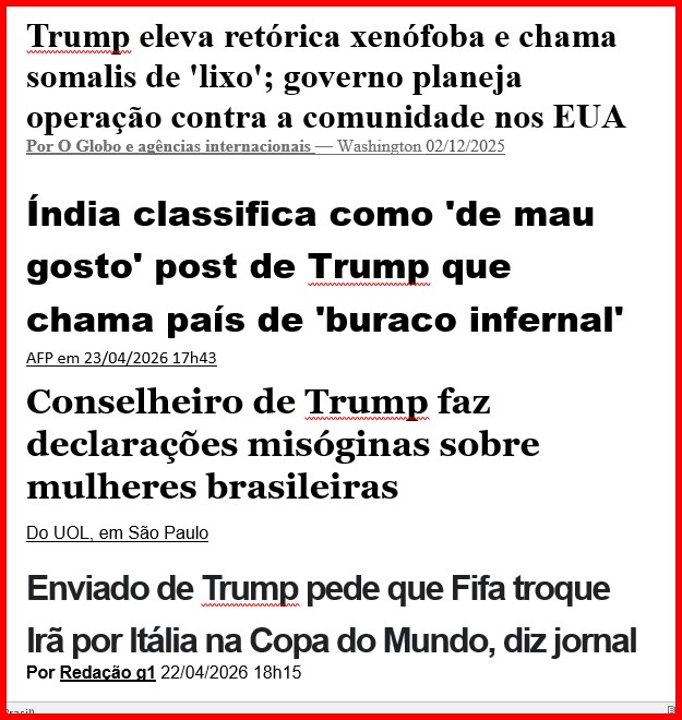 7 – É óbvio que figuras de baixo nível intelectual e moral conseguem ter acesso a autoridades trumpistas. Não é só o King que emergiu dos esgotos capitalistas, mas os assessores que impôs à Casa Branca têm a mesma origem. Eles têm licença pra falar e sugerir qualquer imbecilidade.
