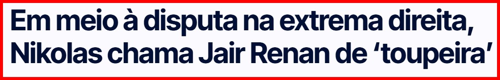 9 – Pode ser que o jogo seja combinado para que ambos permaneçam “causando” nas redes sociais, o que aumenta o número de imbecis que votam neles, mas o fato é que Jair Rena (quem?) e Nikolas terçaram postagens pouco amigáveis através delas, que exigiu reprimenda do ungido.
