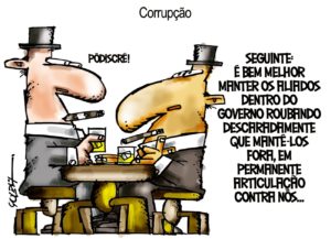 Saímos de lá, eu sabendo que teria que escrever o “paper” o mais rapidamente possível e meu amigo visivelmente irritado. No estacionamento do ministério, não aguentei e gozei: “E aí, ‘cumpanhêro’,  é só o vice que morde ou a Dilma se lambuza também?”  Ele sorriu, encostou-se no meu carro e, didaticamente, como se falasse para as massas, foi direto e claro: “Todo mundo se lambuza, Leo… Não há como fazer campanha eleitoral no Brasil sem morder bancos e empresas e o que mais tiver dinheiro. Eu sei disso, você sabe disso, a Justiça sabe disso… E eu não vou sair por aí gritando que o Temer, o grande Temer, três vezes presidente da Câmara dos Deputados é um corrupto, envolvendo um ministro que pode ser de grande ajuda para nós resolvermos o problema do instituto. Minhas convicções políticas me dizem agora, que denunciar um safado igual a tantos outros, é muito menos importante que tentar resolver a vida de nossos companheiros aposentados.” Ouvi calado e não retruquei, concordando com ele, mas mantendo uma interrogação em meu espírito: se a gente não deixasse passar certas coisas que são aceitas como inevitáveis, talvez nossa elite econômica e política fosse bem mais íntegra e responsável com o povo…