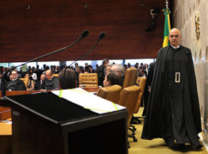 A propósito, cabe aqui uma pergunta que me incomoda desde a primeira vez em que assisti uma sessão do Supremo Tribunal Federal: qual o sentido do juiz colocar numa bancada atrás de sua poltrona, uma ruma de grossas pastas (processos?) que, evidentemente, ele não vai consultar enquanto declina sua opinião? Mais interessante: observem a quantidade de pastas (processos?) atrás de cada juiz. Celso de Melo, o decano, é quem tem maior número… Direito de antiguidade?