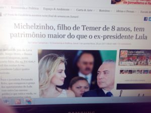 Só para comparar, o patrimônio do não julgável ainda presidente Michel Temer inclui uma casa de 415 m² em São Paulo, valendo 3,7 milhões + lojas num edifício do Itaim Bibi, no valor de R$1,03 milhão (que ele transferiu pro Michelzinho, o filho de 08 anos) que, corrigidos a 2017, valeriam R$11,3 milhões, sem falar nos planos para aposentadoria, que não foram divulgados, talvez porque, conforme decisão de 263 excelências que exercem a deputança, ainda empalma o poder consentido no Brasil, tanto que continuará morando no Palácio do Jaburu em Brasília e “governando” o país.