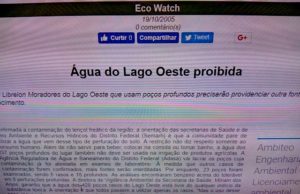 Em princípios de outubro, dois meses após o fato inicial, espertas e interessadas bocas sopraram em sempre curiosos ouvidos jornalísticos que poluições havia no ar, além de aviões e urubus… Ou melhor, na água, e os telejornais locais da TV Globo e o principal jornal do Distrito Federal, o Correio Braziliense, imediatamente secundados pelos demais, divulgaram reportagens “exclusivas” sobre água contaminada por benzeno encontrada na minha região, um núcleo rural muito perto do centro da cidade, formado por muitas chácaras de dois hectares, onde a especulação imobiliária característica de Brasília vinha sendo tenazmente combatida pela associação local, representante da região.