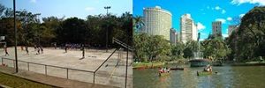 Num terreno baldio em frente ao prédio, jogávamos finca, bolinha de gude e, às vezes, empinávamos papagaios. Um pouco mais crescidos, incorporamos outras brincadeiras, como o futebol de salão, a patinação, a corrida de barco e a exploração de lugares novos e a guerra de mamonas no Parque Municipal.