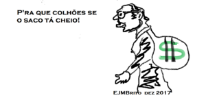 Bem, eu poderia continuar indefinidamente com este arrazoado que, com certeza, a maioria imensa do povo brasileiro não tem a menor noção do que realmente significa. Lendo ou vendo na televisão… Vendo, claro, é mais interessante, apesar de cansativo, pois Suas Excelências têm um enorme pendor para as artes teatrais, seja no gestual, seja na verbalização das palavras, escandidas com fúria repentina ou com monocórdica suavidade.