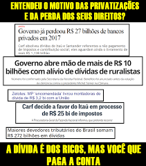 Aliás, esta é a grande sacada dos maiores defensores e propagadores do Estado Mínimo: eles se aproveitam de leis, encomendadas a parlamentares cujas eleições foram financiadas por eles, para pagar menos impostos, ou serem perdoados de dívidas por conselhos estatais, cujos conselheiros foram indicados pelos partidos políticos dos mesmos parlamentares supra citados…