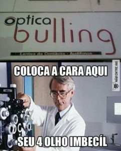 Usar óculos, para mim, teve dois significados antagônicos, endo que o negativo foi bem menos impactante que o positivo. No primeiro, o bullying, (que não existia naquela época como algo a ser combatido, pois era da natureza humana gozar e ser gozado) e, contra a gozação cada um reagia a sua maneira. No meu caso, se alguém me chamasse de ‘quatro olhos’ ou ‘cegueta ou ‘cegum’, a reação dependia do ofensor: se parecesse mais fraco, eu tirava os óculos e partia para a discussão (felizmente, a turma do deixa-disso apartava logo) e se fosse mais forte, fingia que não era comigo e me valia dos óculos (naqueles tempos, não era de bom tom bater em alguém de óculos…).