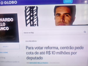 Ou, ainda, como os ilustres deputados do afamado Centrão – que receberam significativos ‘agrados’ do Orçamento para aprovar o impeachment de Dilma e não aprovar os impeachments de Temer – e que vêm se reunindo com as lideranças políticas do novo governo, negociando uma substanciosa verba individual de R$10 milhões para olhar com os devidos carinho e espírito patriótico o projeto da Nova Previdência.