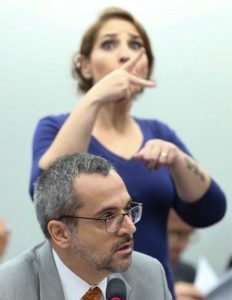– Weintraub vai à Câmara com uma caixa com 30 bombons… Tira 03, corta 01 ao meio e diz que não é corte, é contingenciamento de 3,5%. Pelas minhas contas, 3,5 de 30 é mais que 10%. E a linguagem de sinais atrás dele mostra o que é contingenciar!
