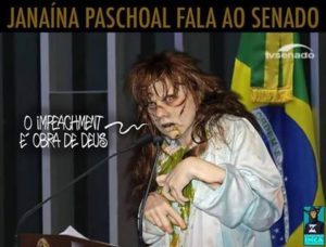 – Janaína Paschoal diz que Bolsonaro precisa trocar seus assessores. Não disse, mas tenho certeza que se daria muito bem substituindo-os. A cada despautério do Mito, ela faria aquele espetáculo descabelante de santo baixando no Planalto e o Ogum se mandava na hora!