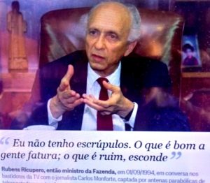 É óbvio que aos financiadores da Imprensa não interessa a verdade. Se esta for favorável, maravilha! Se não, pra que divulgar? Alguns anos atrás, um ministro da Fazenda de Itamar, Rubens Ricúpero, disse isto claramente, achando que era uma conversa particular, como informa a Wikipédia: