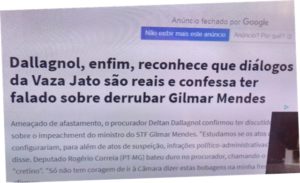 – Confabulam os poderes um ‘jeitinho’ para Dallagnol deixar a Lava Jato: tentam convencê-lo (ou pressioná-lo) a exonerar-se. Ele não fará isto. Seria reconhecer uma culpa que um “enviado de Deus” para limpar o país da iniquidade nunca admitirá…