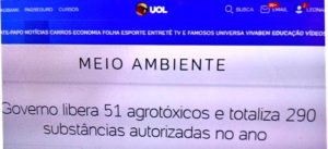 – Ministra da Agricultura se diz incomodada com divulgação do aumento excessivo de licenciamento de agrotóxicos no Brasil. Pra ela, como pro Mito, em relação ao desmatamento, o problema não é o perigo à saúde, mas a liberdade da Imprensa.