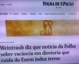 – Weintraub diz que jornaleco (Folha de São Paulo) induz terror aos jovens que farão o ENEM porque divulgou vacância na diretoria de Avaliação da Educação Básica por 05 meses. Na visão dele, o problema não é o fato, mas a divulgação do fato…