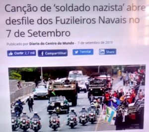 – A grande mídia, talvez de propósito, não informou, mas o desfile militar do 07 de setembro em Brasília foi aberto pela banda dos Fuzileiros Navais tocando Lili Marlene, canção símbolo dos soldados de Hitler… Coincidência? Ou ato falho?