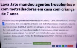 – Lava Jato, o poder paralelo: 03 agentes da PF, com metralhadoras, ingressaram na casa da filha de um investigado, berrando pra ela revelar o paradeiro do pai (que estava em Portugal) pra ‘evitar dor de cabeça pro seu filho’, uma criança então com sete anos…