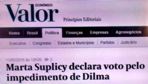 – O país está tão sem rumo, que múmias políticas começam a se levantar dos túmulos! Marta Suplicy, uma grande estrela política do passado, que vendeu a alma pra se manter no poder e sifu…*, tenta reviver. E diz: esqueçam o impeachment! Traição não se esquece!