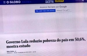 – Descobri porque a Globo tem ódio visceral ao Lula e o Mito dos institutos públicos: estudo do IBGE mostrou que o governo Lula reduziu pobreza do país em 50,6%. algo inaceitável pras classes média e alta que dão audiência à Globo e apoiaram o Mito.