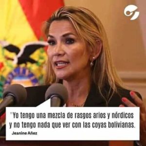 – A auto proclamada presidenta da Bolívia exaltou seu sangue ariano e declarou sua ojeriza a ritos indígenas e que as cidades não eram lugares para eles. Eles discordaram e estão levando os mortos pela polícia nas manifestações de El Alto para serem enterrados em La Paz.