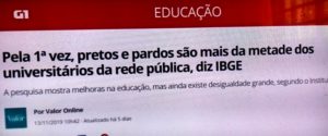 – Azar dela! O processo é irreversível. De acordo com o IBGE, em 2018 havia mais pretos e pardos (50,3%) que brancos (49,7%) nas universidades públicas, 1ª vez que isto acontece em 500 anos de história. Por isso, Weintraub, o palhaço da Corte, quer privatizar as universidades…