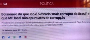 – O Mito, em estado apoplético, diz que o Rio de Janeiro é o “estado mais corrupto do Brasil”. Fala com conhecimento de causa: ele foi um político do Rio por quase 30 anos e, no meio de tanta corrupção, manteve-se impoluto, rachando salários para bem do povo… Seu povo!