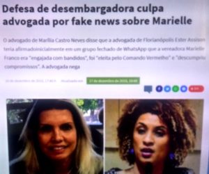 – Processada pela família de Marielle Franco por tuitar, logo após sua morte, que ela era “engajada com bandidos” e foi “eleita pelo Comando Vermelho”, ilustre desembargadora e tuiteira do Rio jogou a culpa da tuitada dela numa advogada de Santa Catarina.