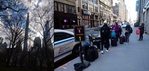 Nós só fomos descobrir a “rodoviária” do ônibus para Washington no dia de ir embora: por sugestão da Fernanda, Lara havia comprado as passagens pelo celular, conseguiu chamar um Uber também pelo celular e o uber driver nos levou a uns nove quarteirões do hotel, na tal out Penn Station, uma rua comum onde um ponto de ônibus comum indicava o nome da empresa (Vamose), isto é: não havia rodoviária para algumas empresas interestaduais… elas paravam nas ruas mesmo, economizando taxas, impostos e que tais e barateando a passagem, claro (viva o capitalismo!)