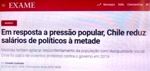 – Interessante como a grande imprensa brasileira cobre a América Latina. Manchetes surpreendentes quando da revolta popular do Chile, uma economia exemplar! O remédio normal, cacete, não resolve, o governo de direita aceita algumas imposições e o assunto morreu.