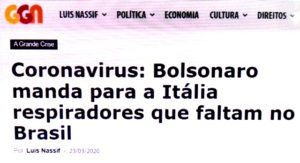 – O slogan não era “Brasil acima de tudo”? Então, como é que ministros, filho e presidente autorizam repassar respiradores, que não são suficientes para atender a população brasileira, para a Itália? Solidariedade cristã com os italianos ou desprezo total pelo povo brasileiro?