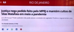 – E porque a Justiça, que aceita que o governo mande fechar shoppings, teatros, cinemas, comércio em geral, acata manter templos abertos? Medo da ira de Deus? Ou de Macedos, Valdevinos e Malafaias?